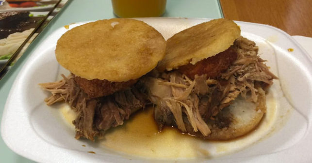 Agüita e’ sapo: A simple vista es una arepa frita con pernil y un pedazo de queso, sin embargo, al igual que todo lo que viene dentro de una caja Clap, las agüita e’ sapo no son lo que parecen. El secreto está en el fondo del plato: el líquido con los jugos del pernil y la grasa que tu cardiólogo te prohibió. ¿La meta? Enchumbar la arepa con esa grasa. ¿Murió algún anfibio en la preparación? No, pero si sufres de hipertensión, probablemente mueras tú abombado como un sapo.