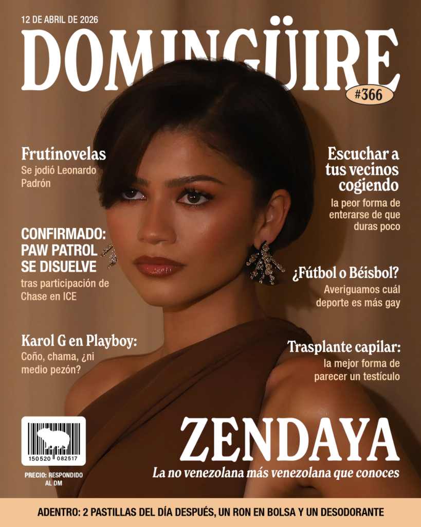 Debe haber más Zendayas y Zendayos en Maracaibo que en el resto del planeta; sin embargo, la portada de Domingüire de esta semana la engalana la Zendaya original, la estadounidense, protagonista de Euphoria, Challengers y de la película más reciente de Marvel, “Spiderman: Presidente deme una casa”.