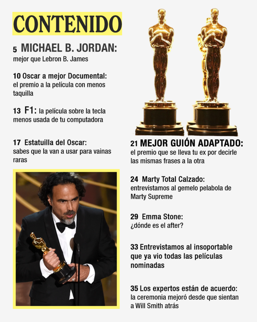Esta nueva edición de la revista que más artistas usarán como accesorio en la alfombra roja trae además entrevistas exclusivas con un gemelo de Timothée, el Whatsapp de Emma Stone en exclusiva y frases para sonar como cinéfilo así no sepas nada de cine, incluyendo el clásico “me encantó la cinematografía”. Esta edición especial es todo lo que necesitas en tu vida, además de un trabajo.
