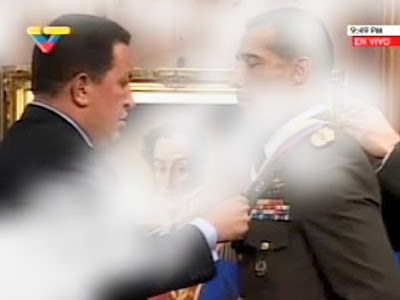 El Presidente Hugo Chávez otorgó, en el medio de una humareda de gas lacrimógeno, la Orden del Libertador en segunda clase al polémico Coronel de la GN, Benavides Torres. Recordemos que este Coronel lideró, el pasado sábado, el partido de futbolito lacrimógeno en el que la Guardia Nacional venció a los opositores 345 goles a 0.