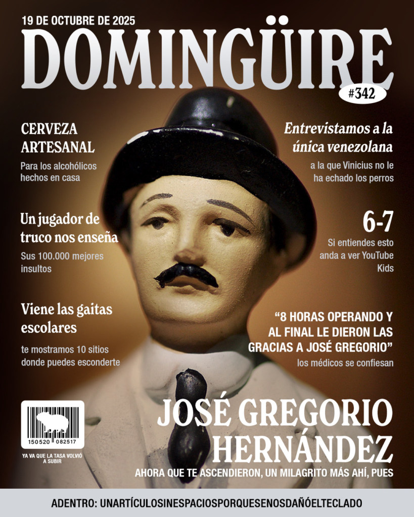 La Domingüire de esta semana llega más religiosa que las historias de Whatsapp de una abuela, porque hoy canonizan a los venezolanos Jose Gregorio Hernández, Carmen Rendiles y Andrés Lasso. Además, te traemos un artículo especial sobre toda la paja que tu familia habla de ti, y nuestro popular test para saber qué tipo de malapaga eres según tu signo. ¡No te lo pierdas”