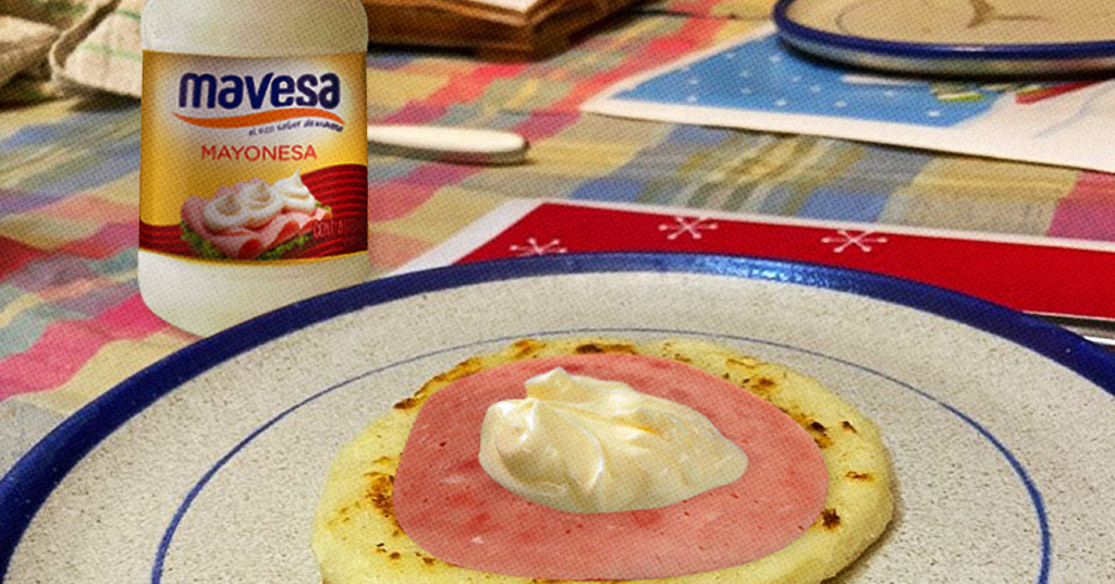 Si vas a ponerle un pedazo de jamón encima a la arepa como típico hombre sin ganas de existir, al menos échale un toque de mayonesa Mavesa