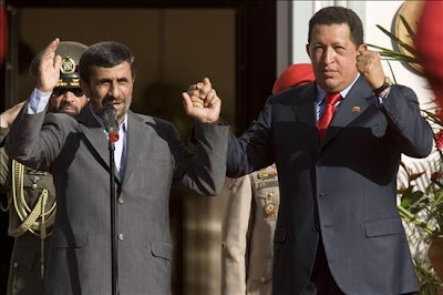 Chávez y Ahmadinejad unen sus manos con pega Hércules
